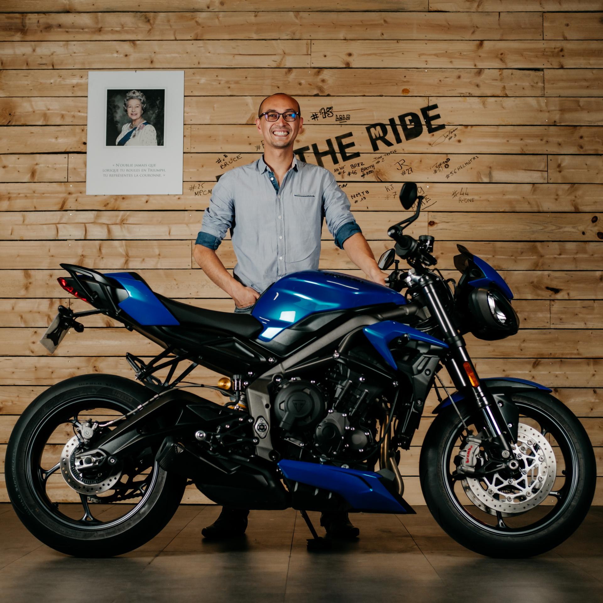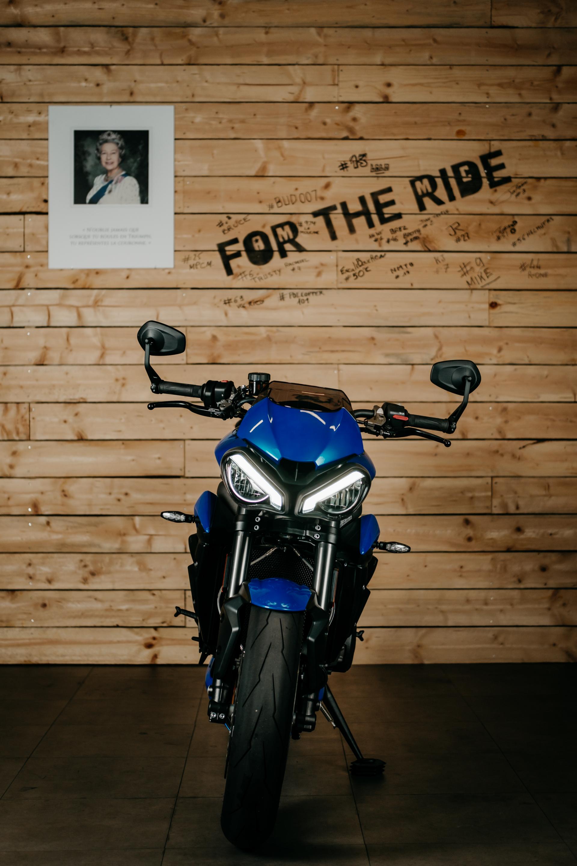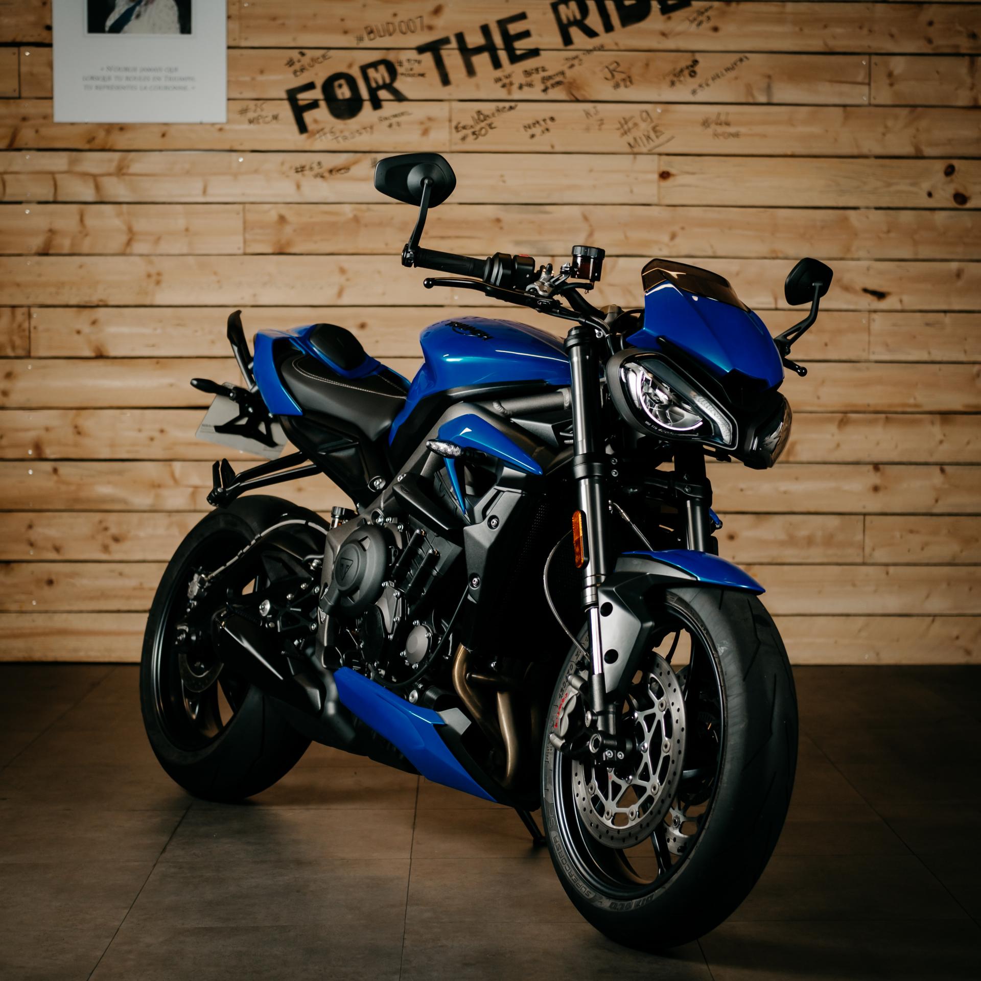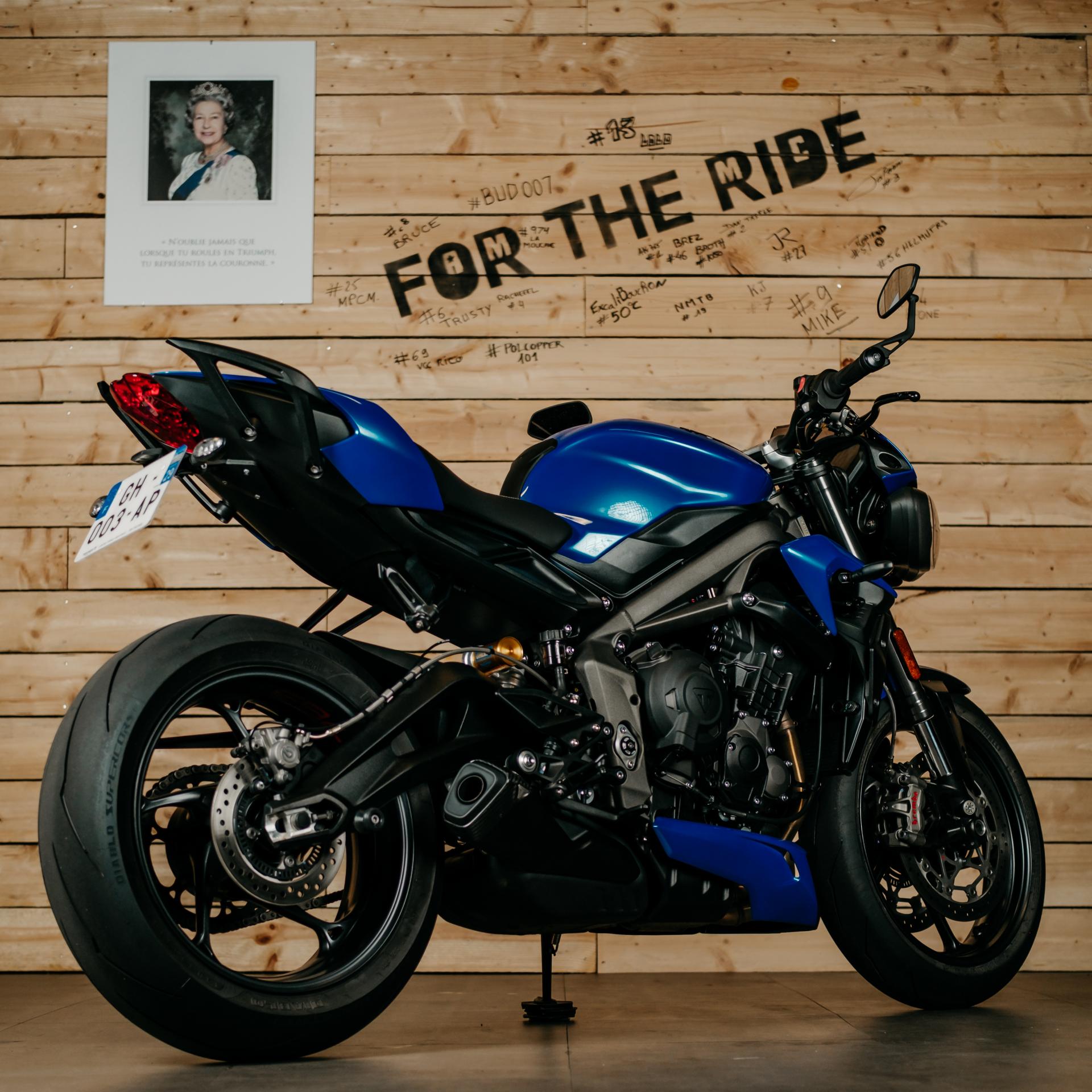 uLa deuxième version d’un STREET TRIPLE RS en Néon Blue, mais cette fois nous avons passé toutes les parties aluminium en noir satiné, platine de repose pieds, sélecteur, pédale de frein, partie arrière du châssis etc…