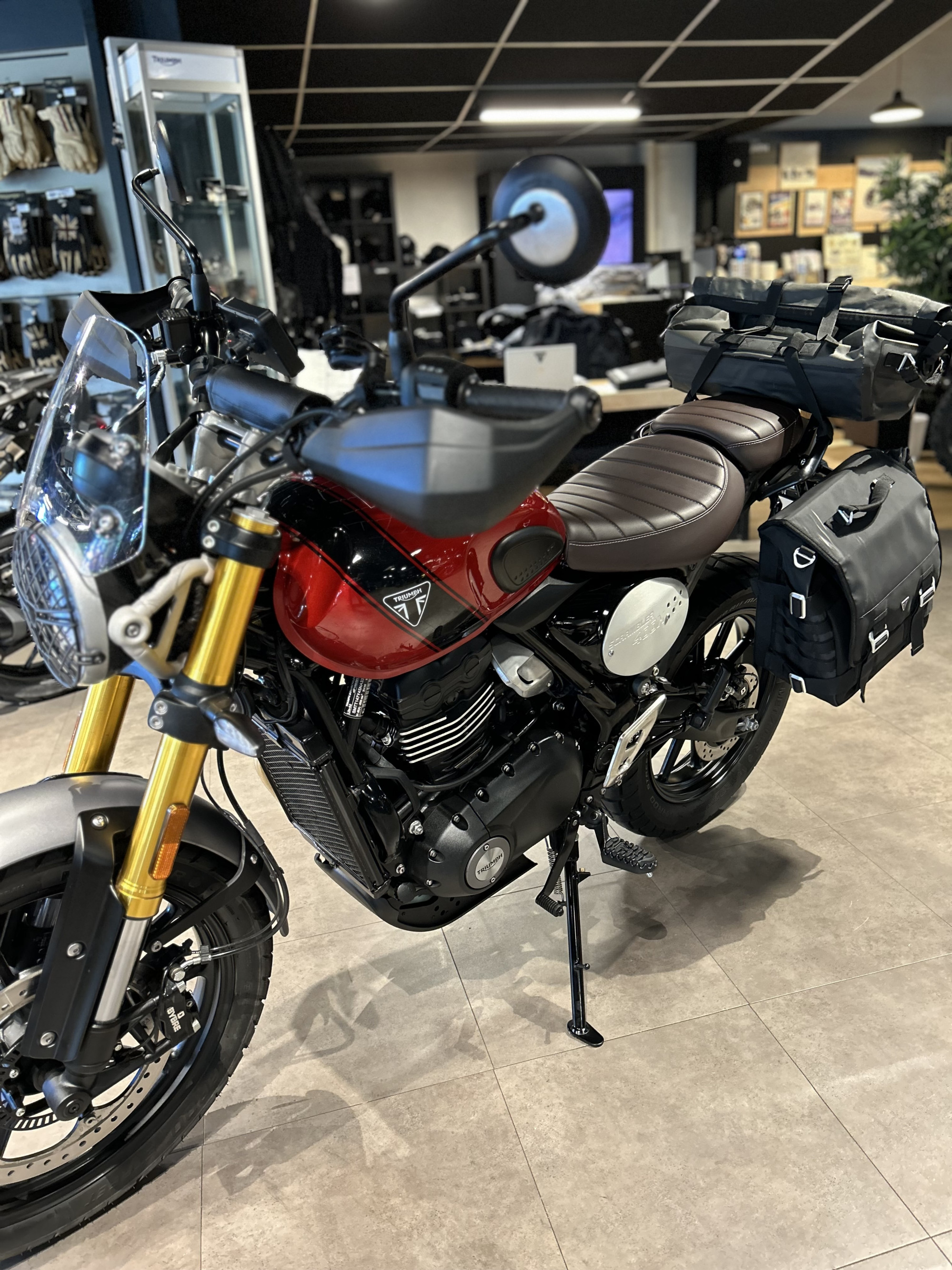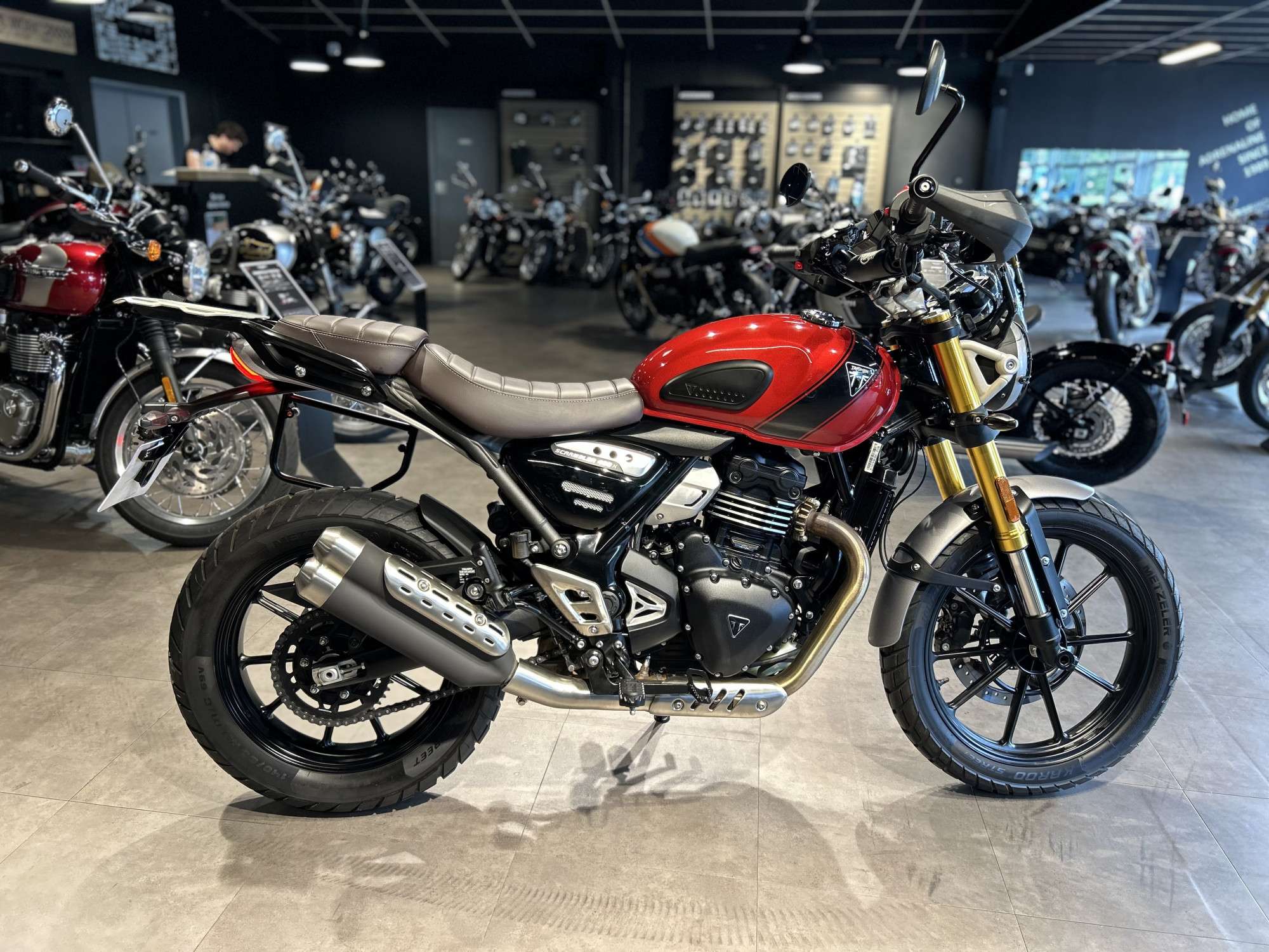 TRES BEAU SCRAMBLER 400 X A2 - 1ERE MAIN - 3750 KM - GARANTIE TRIUMPH 06/2027 - OPTIONS TRIUMPH - PORTE BAGAGE - POIGNEES PASSAGER - PARE BRISE - SACOCHE LATERALE - SAC DE SELLE - SYSTEME AFFICHAGE GPS CARTOGRAPHIQUE BLUETOOTH - SUPPORT QUADLOCK COMPLET